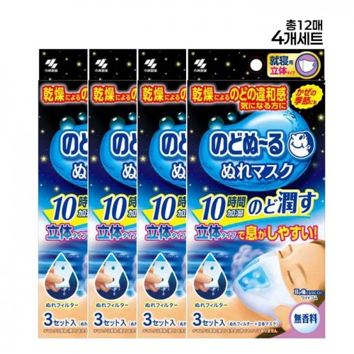 - 노도누루 가습 마스크 수면용 무향 입체형 3개입X4개세트