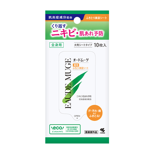 오드무게 청결 약용 미용시트 10매 코바야시제약 Eaude Muge 거칠어진 피부와 땀띠, 피부갈라짐, 여드름 오드뮤게